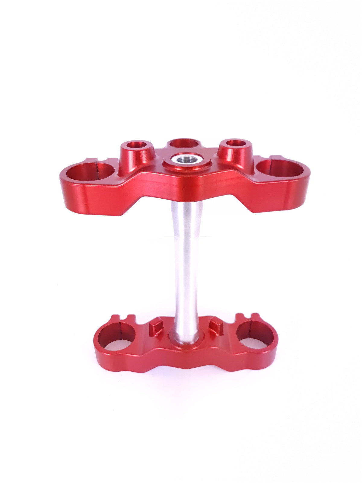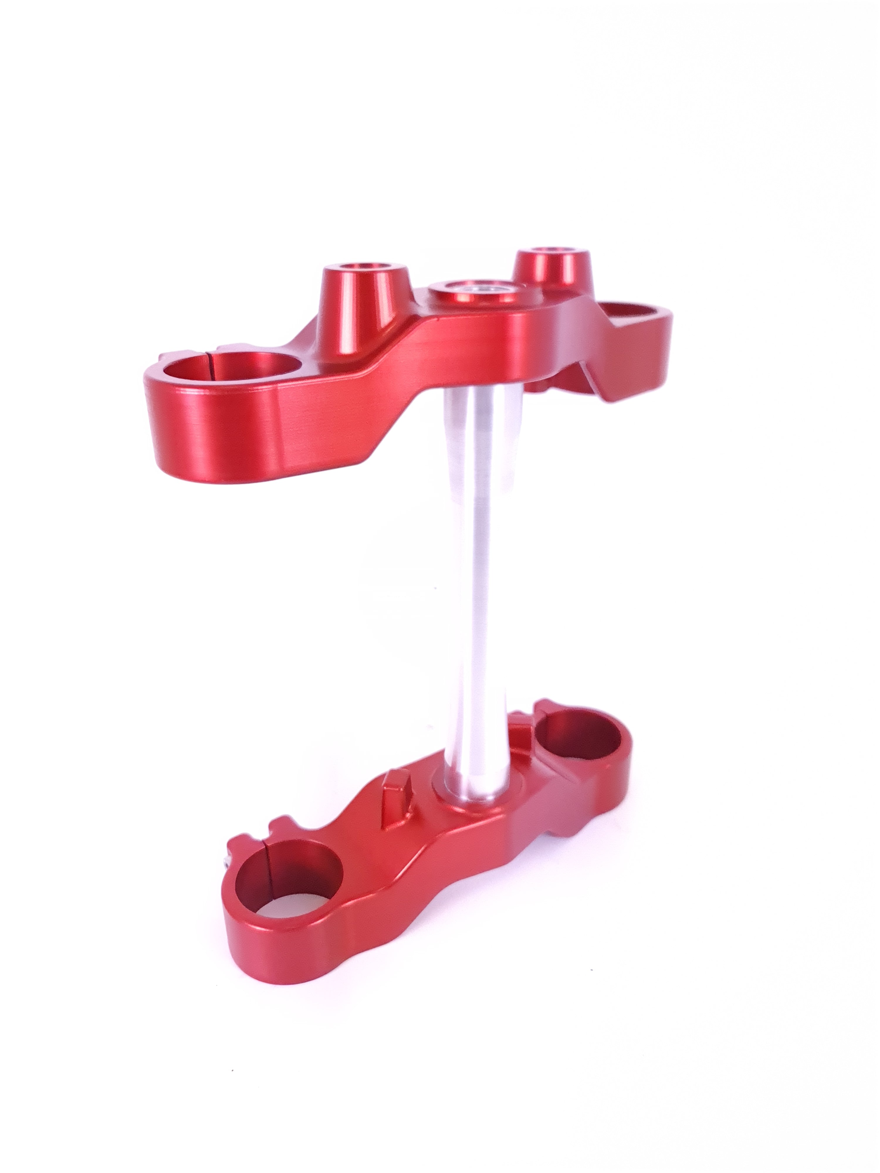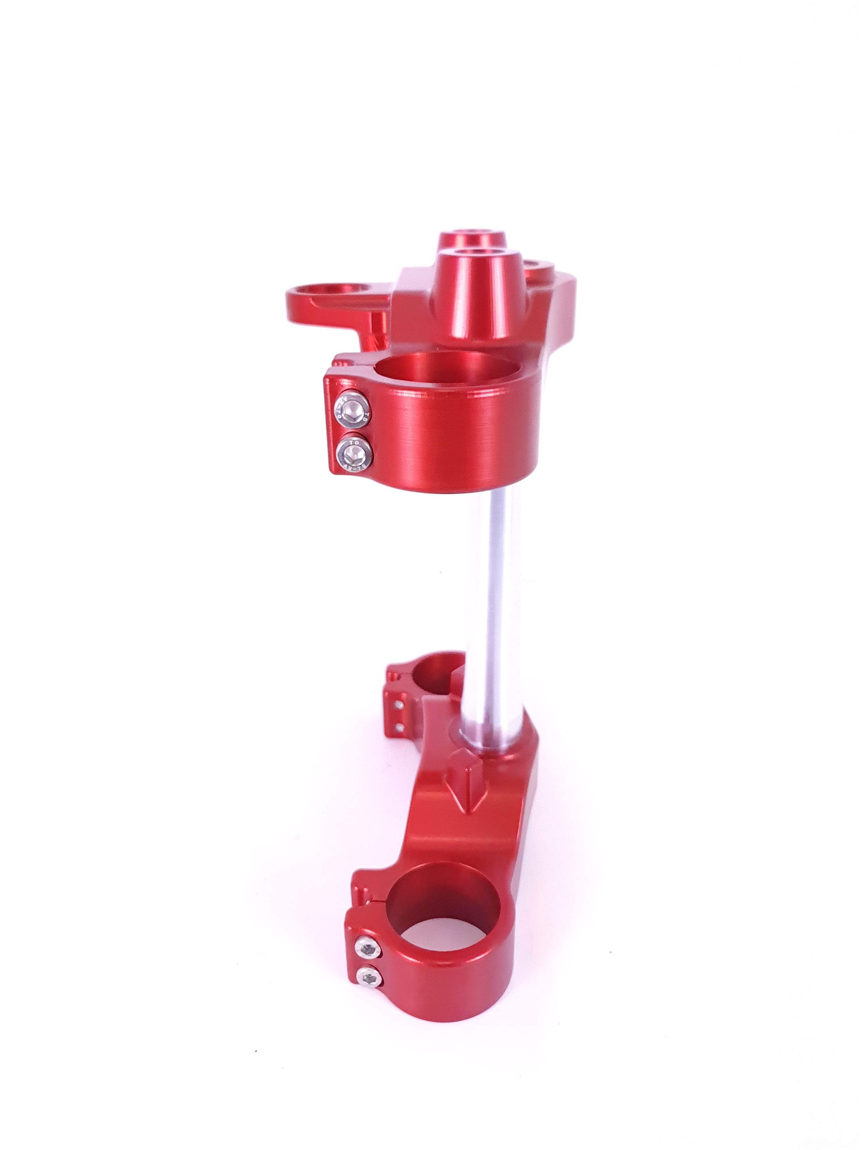 The choice of this material guarantees greater structural rigidity compared to the die-cast aluminum alloy of the OEM plates while maintaining the same working geometry, thus ensuring excellent interchangeability with the OEM steering plates.