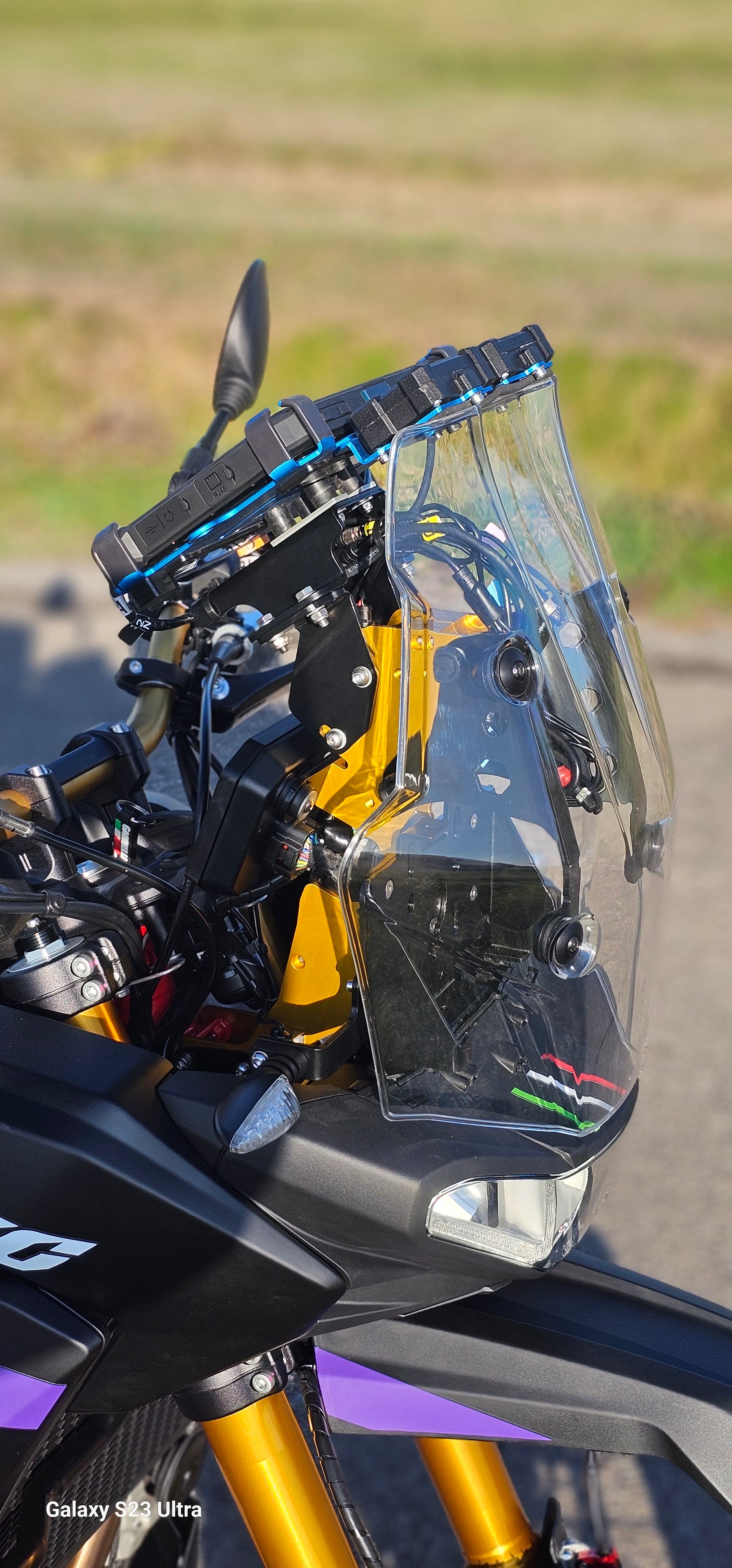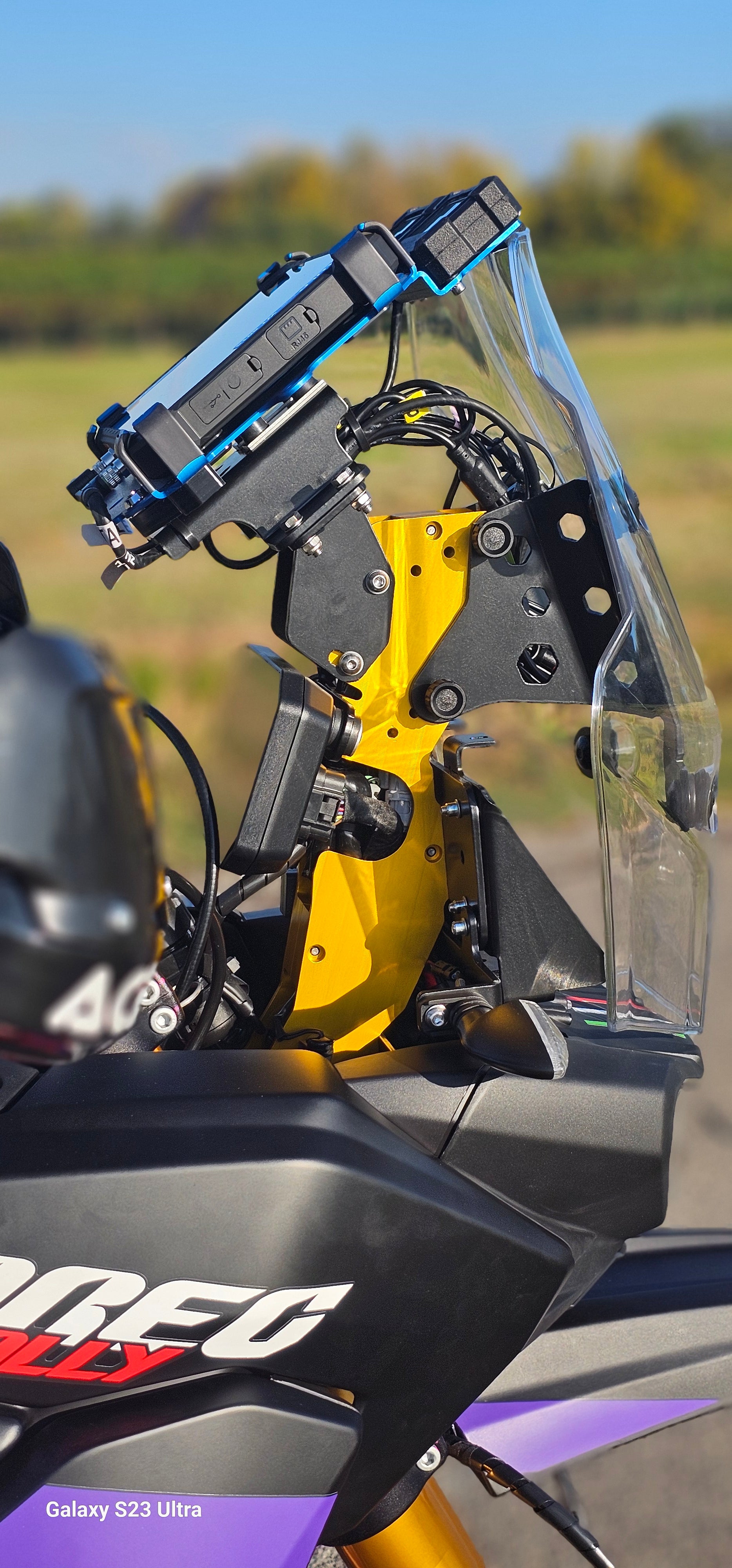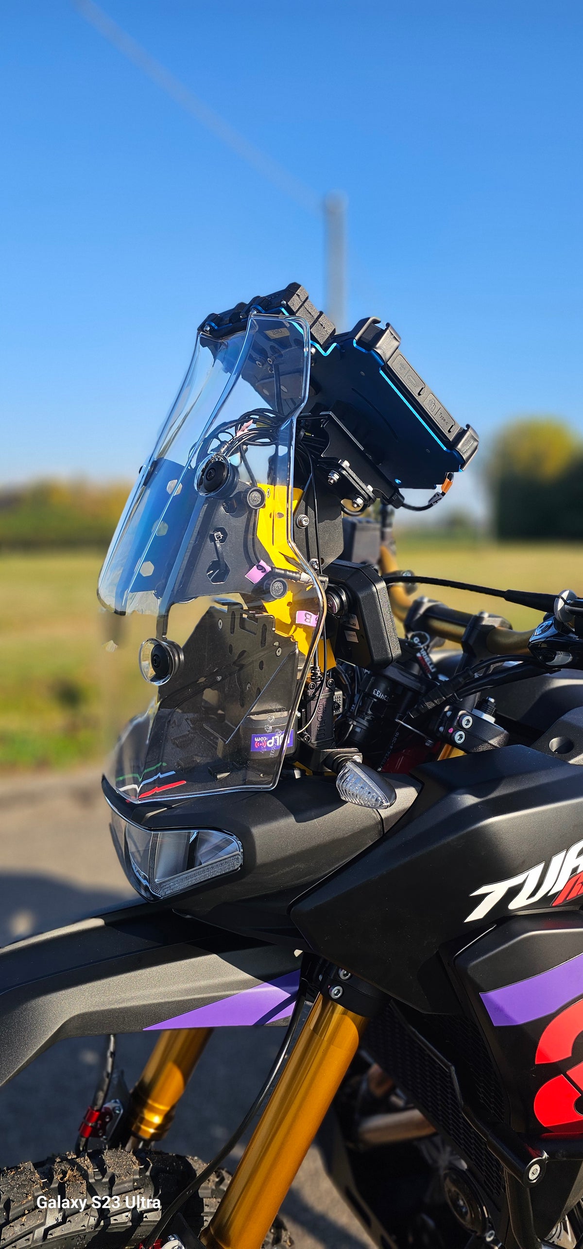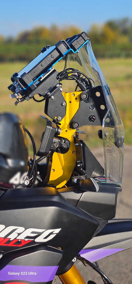 Con questo allestimento Adventure avrai a disposizione, in posizione ben visibile e regolabile, il giusto spazio per alloggiare i tuoi strumenti di navigazione , siano essi un GPS, un Rugged Phone o un Rugged Tablet.