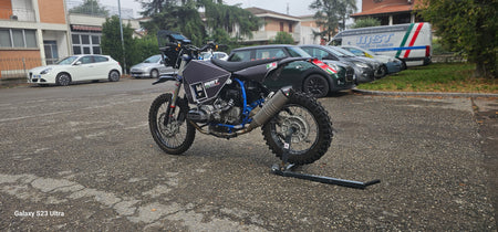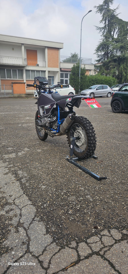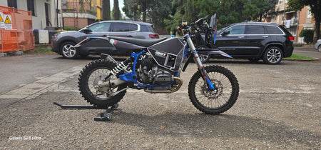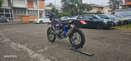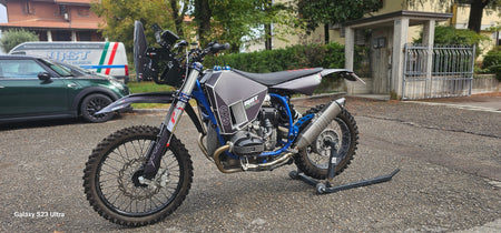La preparazione che vedi è una dimostrazione del nostro potenziale. Questa BMW R80 GS, trasformata in una moderna macchina da rally, è frutto di una nostra visione, un'esecuzione che spinge al limite estetica e performance.
