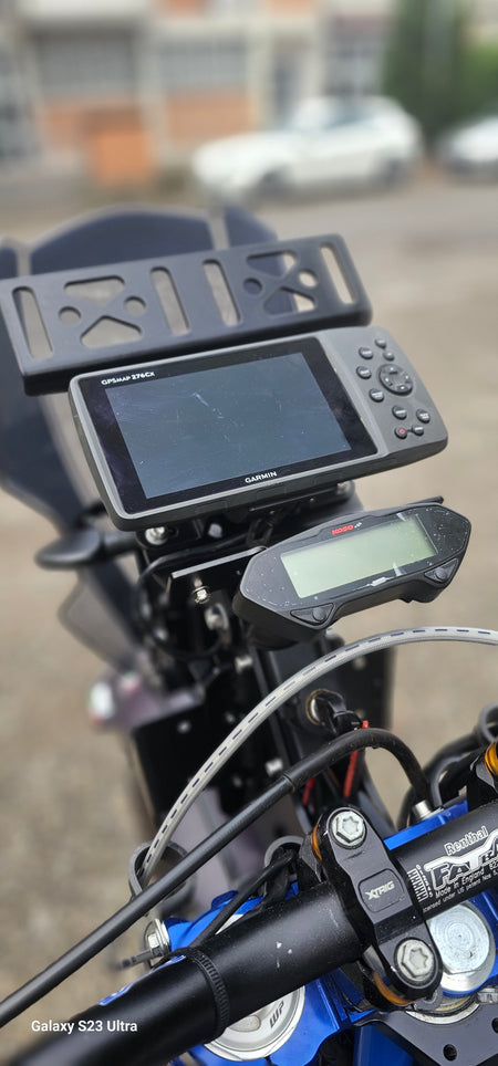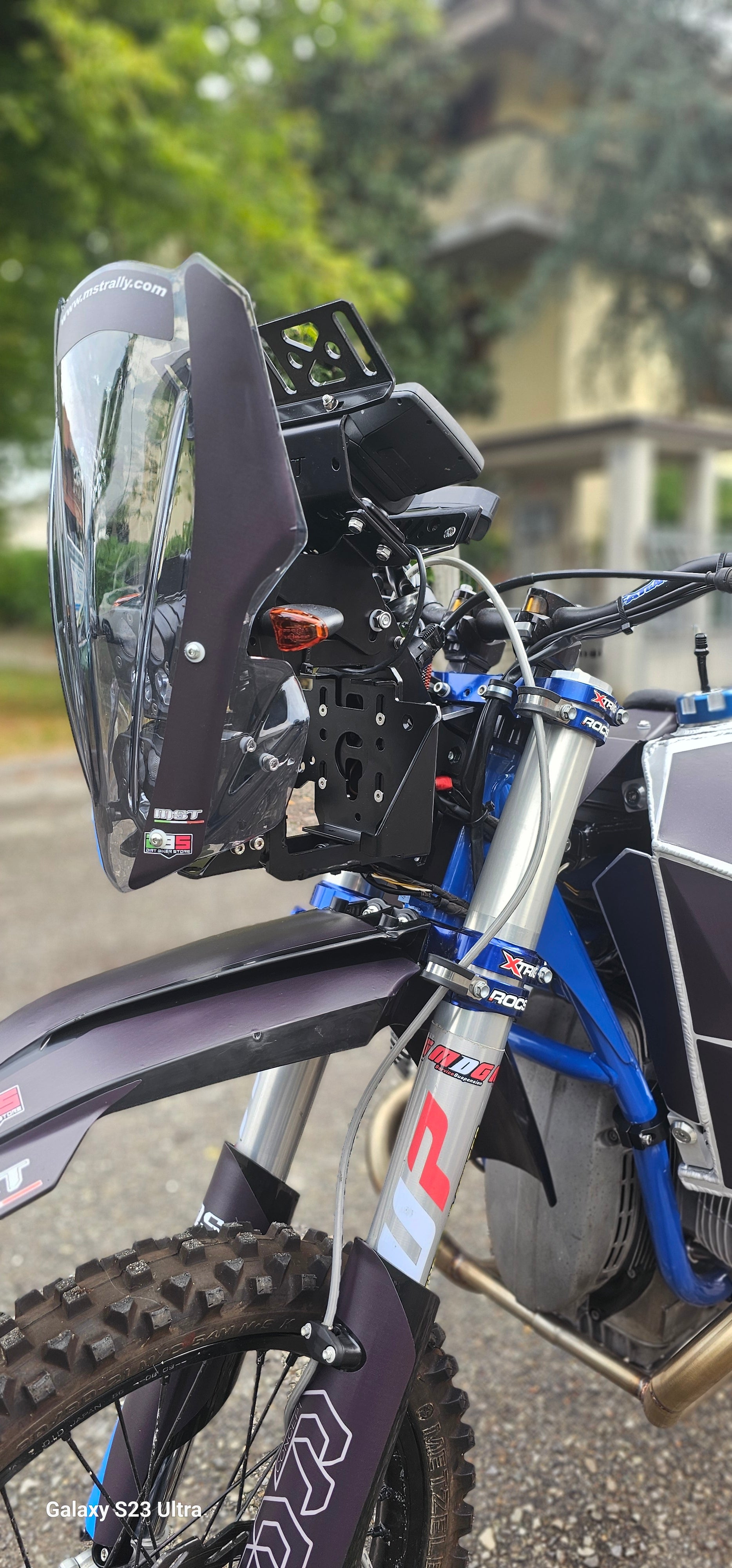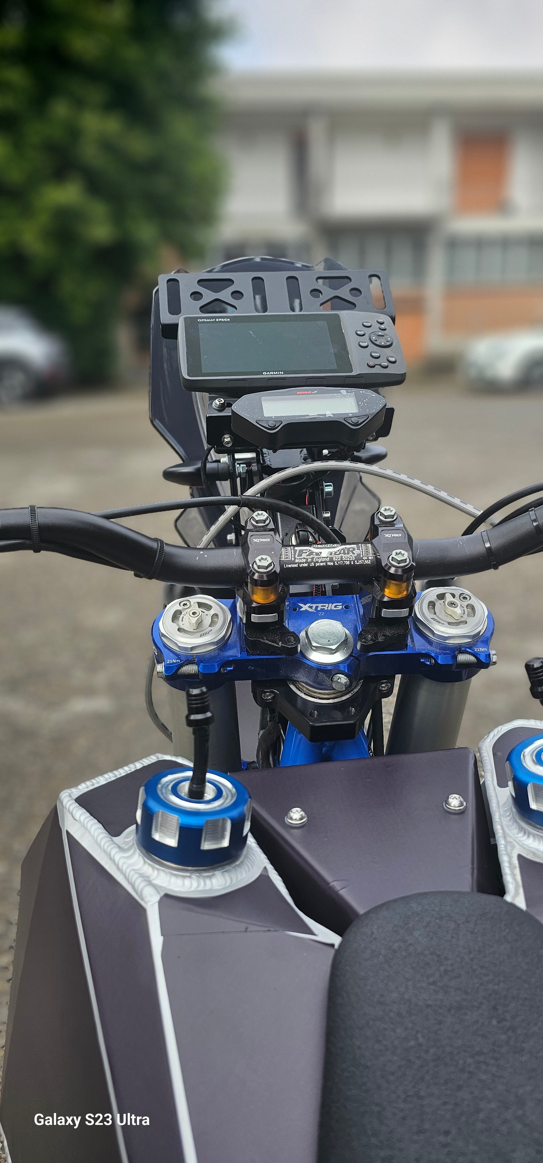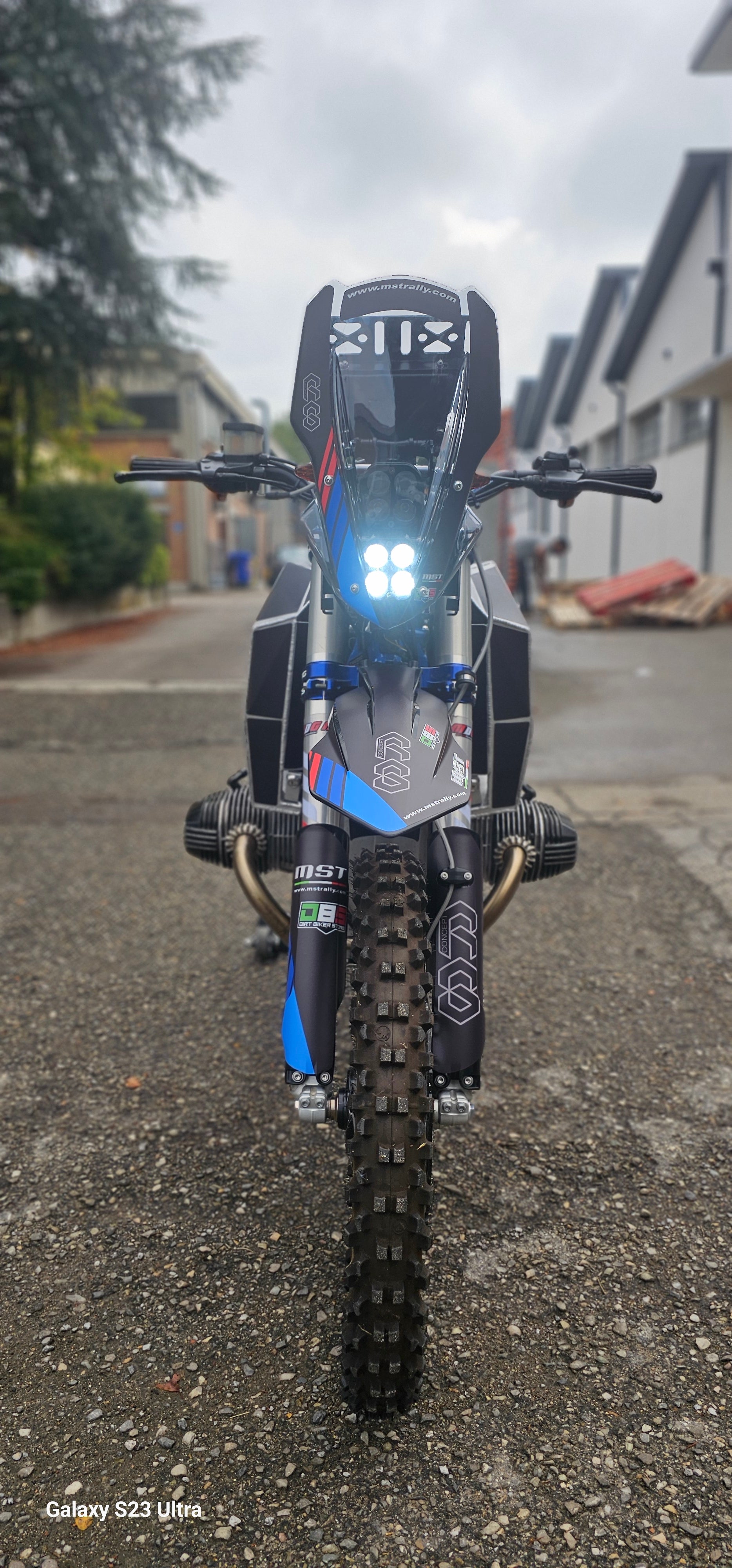 • Navigazione e Luce: Torre anteriore in lega di alluminio su misura con fari a LED, supporto integrato per strumentazione digitale e Device dedicati alla navigazione GPS ( o Roadbook)